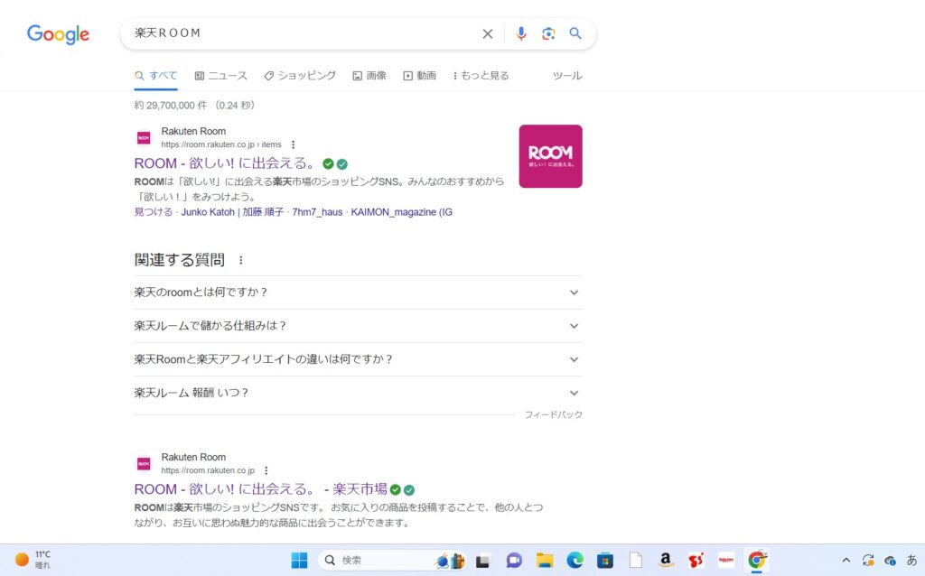 Google Chromeで『楽天ROOM』で検索
